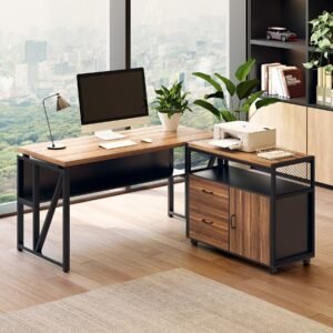 Be the first to review “55″ / 63″ L-Shaped Executive Desk with Storage Shelves and Mobile File Cabinet(2 Drawers and 1 Storage Compartment)”