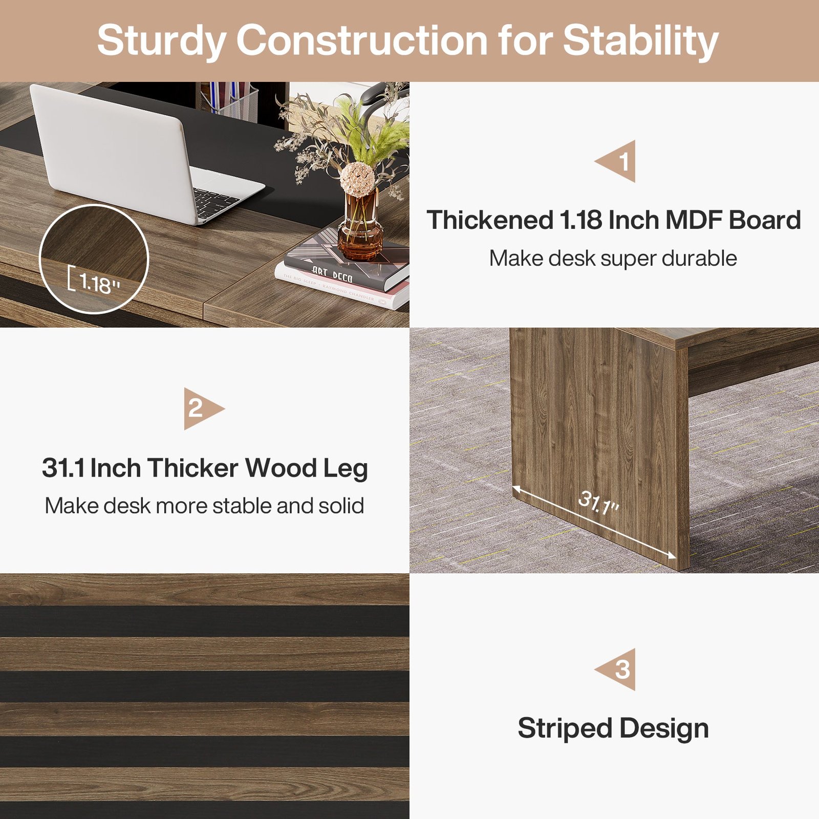 Durable and Stylish – The desk is made of thick MDF with a vintage spliced finish which is water and scratch resistant. Supported by a heavy-duty frame, it has a load capacity of 450 lb. Its black and grey color scheme provides a fashionable contrast while the striped baffle and contrasting filing cabinet draw the eyes.