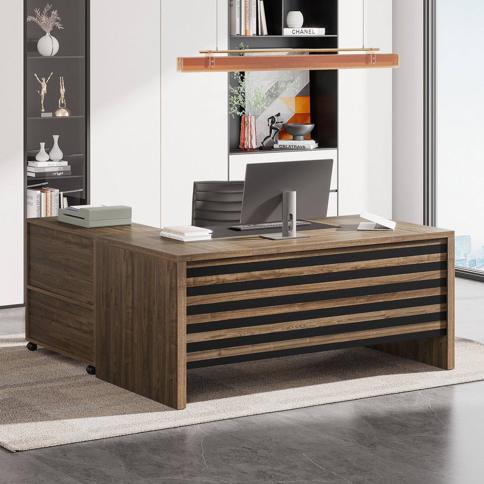 66.2″ L-Shaped Executive Desk, Computer Desk with Mobile File Cabinet